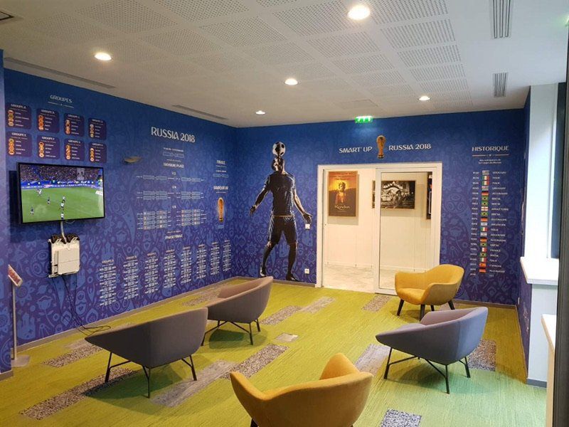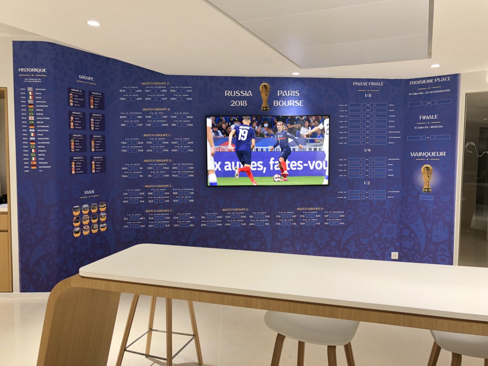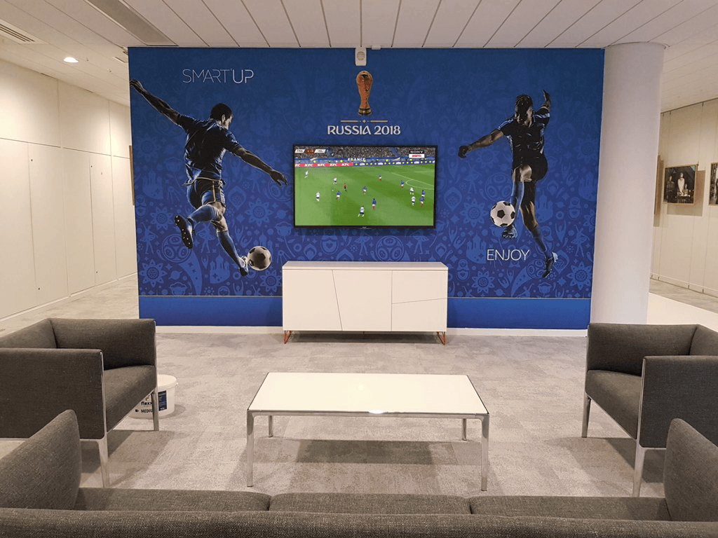 Réalisation et pose d'une toile Digitex. Pose d'écran grande taille (4K) pour diffusion en temps réel des matchs de Football.